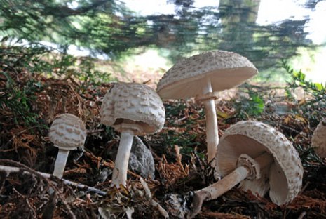 Smith's amanita is not as deadly as some of its relatives, such as the Deathcap, but it can kill human eaters. It's sometimes mistaken for Matsutake, a prized edible. Smith's Amanita has distinctive, cottony veil fragments around the outer rim of the cap when young, but these often fall off with age.